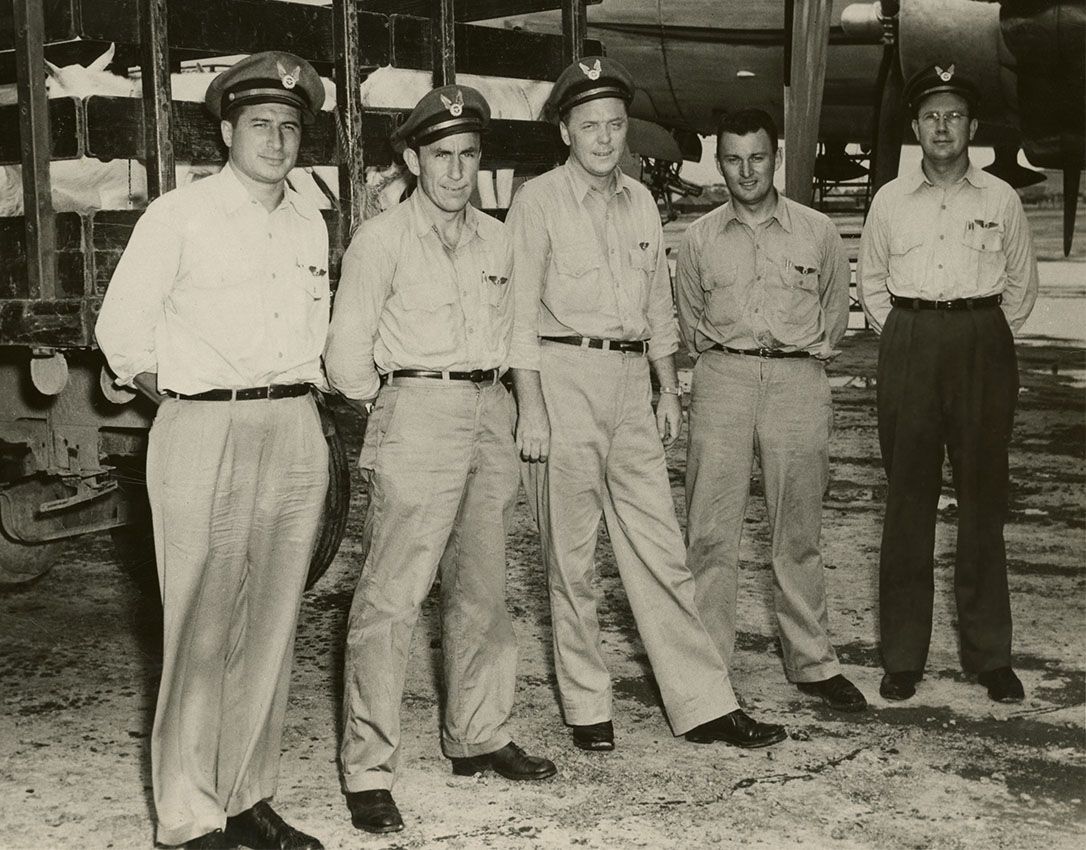 Ed Acree, Chief Flight Engineer; Capt. Carl Hirschberg, Vice-President Flight Operations; and Capt. Ed Foster, Chief Pilot.