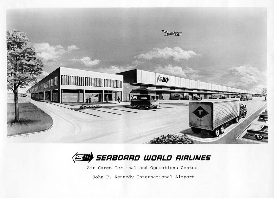 Architect's drawing of Building 260 at JFK. The building was finished in 1966.