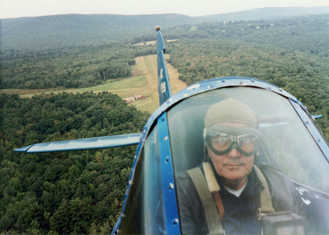 In 1971, Ike purchased the then-unused Barrett Airport in Canadensis, Pa., restored it, and renamed it the Flying Dollar Airport. At the Flying Dollar, he restored many airplanes and was known in the area by both locals and tourists for his aerobatic rides. He is seen here with an open-cockpit Great Lakes biplane, the sort of airplane he loved most. In this photo, he is flying a Waco.