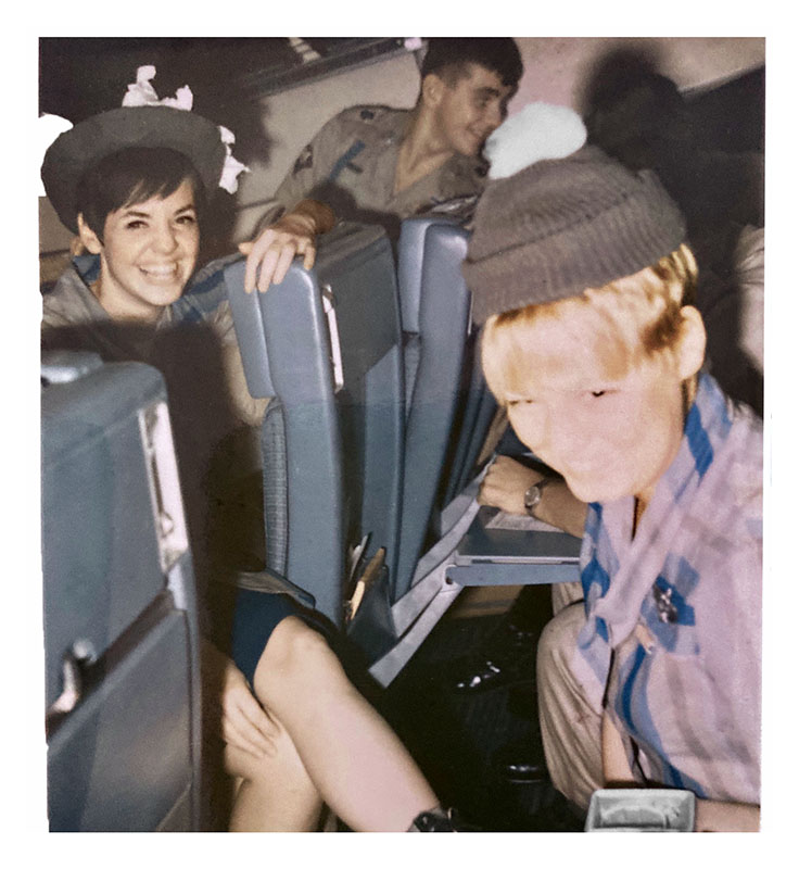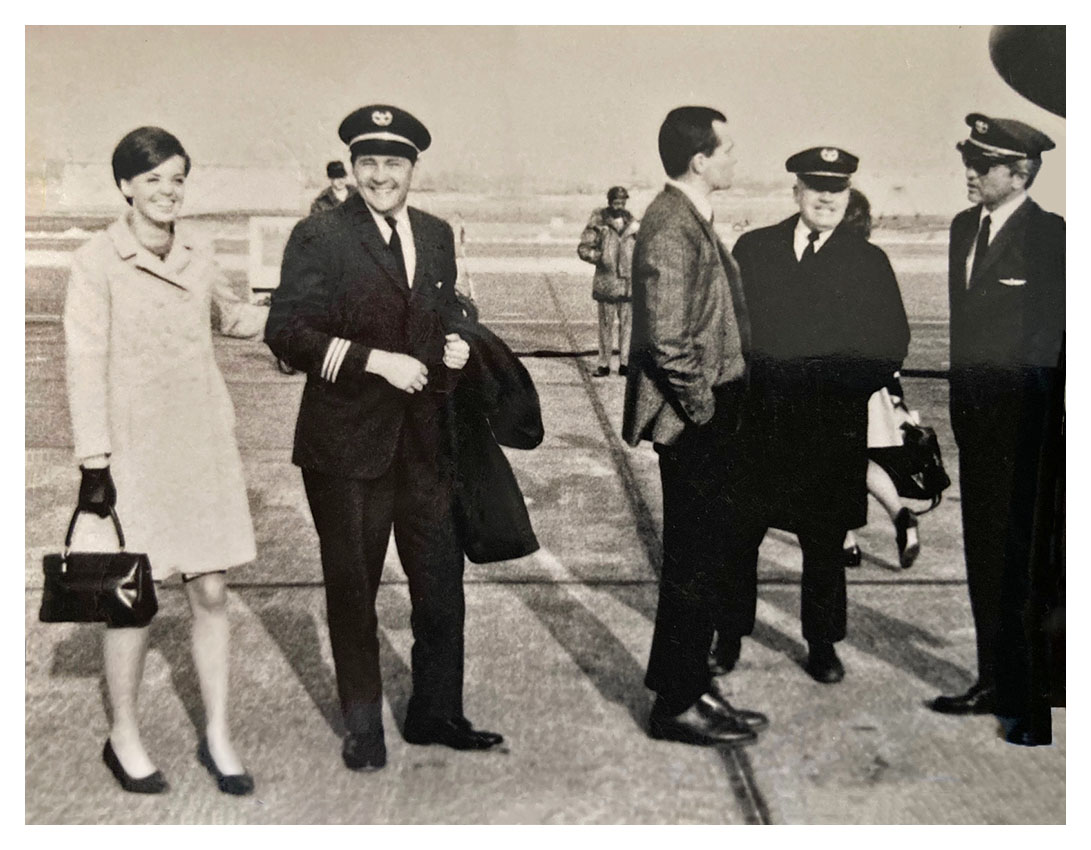 Diane Stannard, Lynn Benedict, Keye Hollister, and Sharon Way - inflight 1969 (DSH)