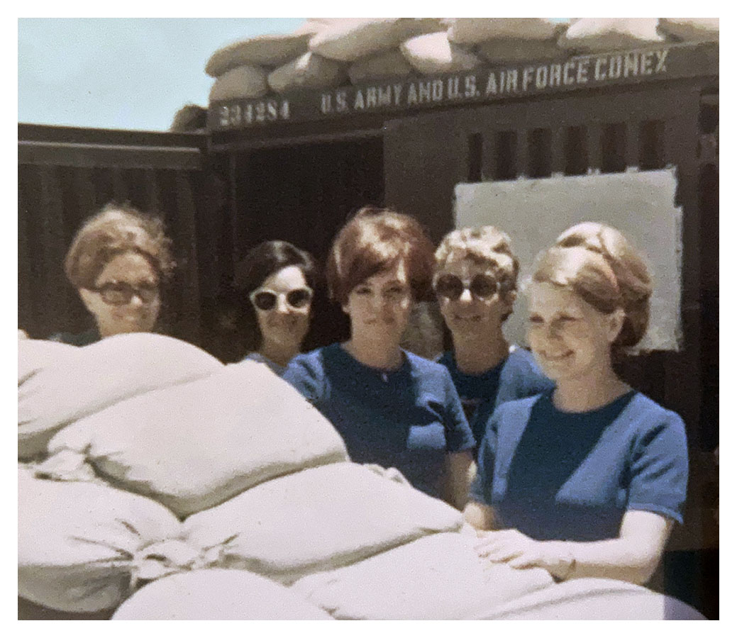 Keye Hollister, Lynn Benedict, Diane Stannard, Gail Schoeder, and Margaret Nelson. Cam Ranh Bay, Vietnam (DSH)