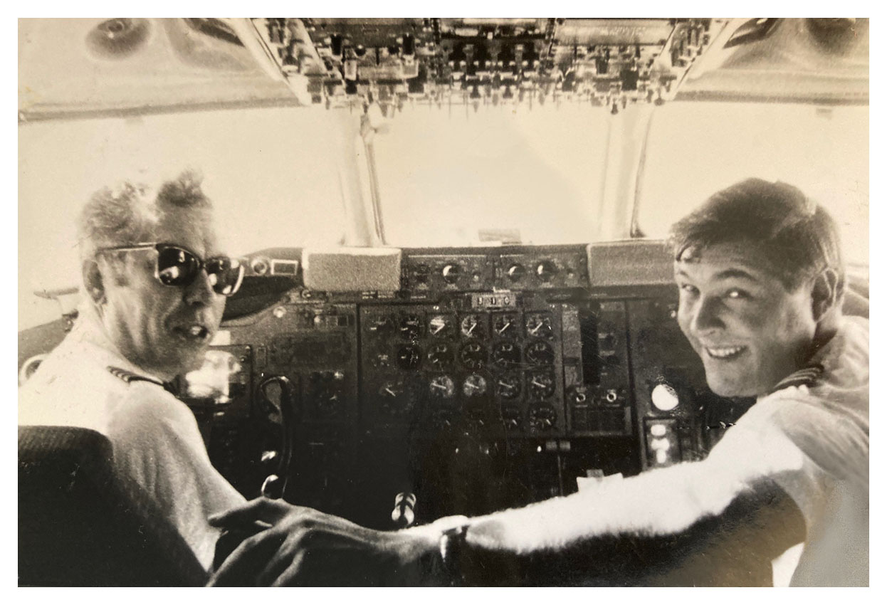 Joe Kuklewicz and Bill Hyatt in a DC-8-63CF, April 1969. (DSH)